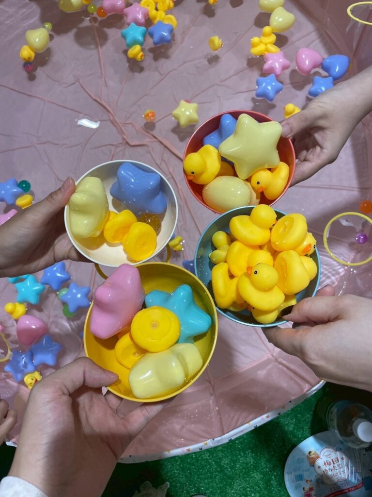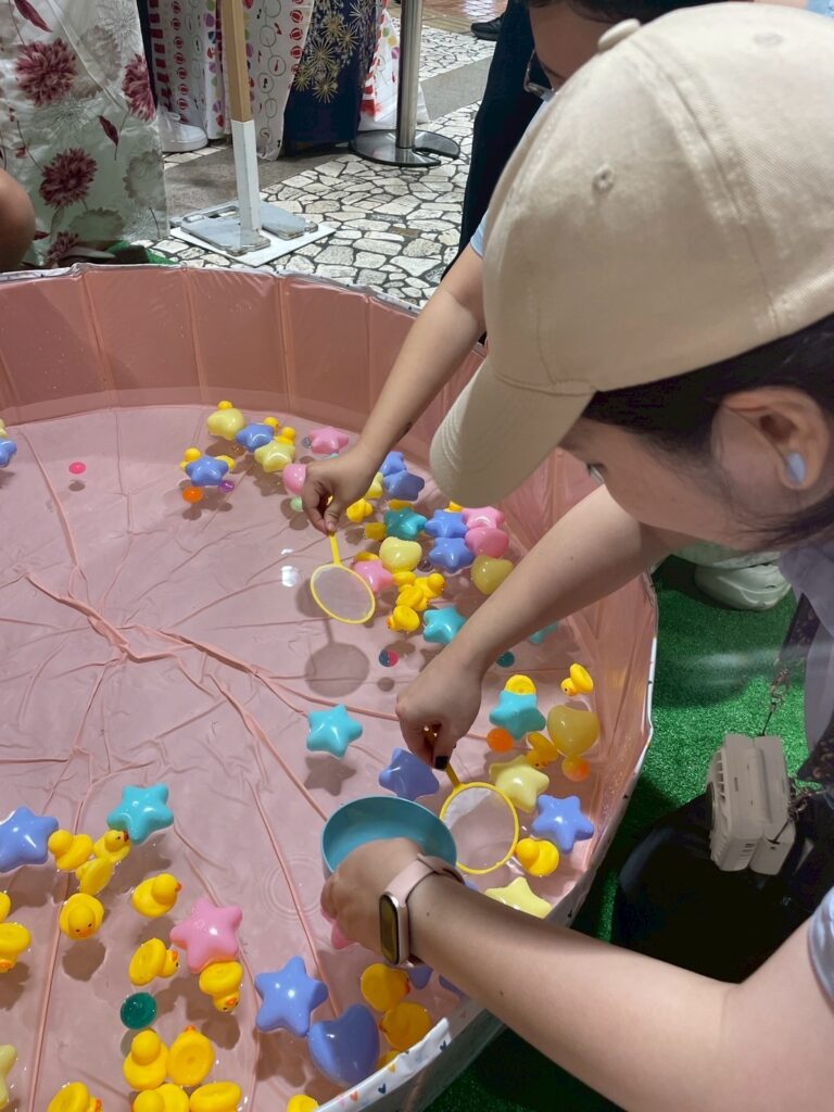 There we discovered a playful twist on the traditional “goldfish scooping”—a rubber duck scooping game. Much easier than goldfish, we caught several ducks in no time. Only at the end did we learn, with surprise and laughter, that each person could only take home two.