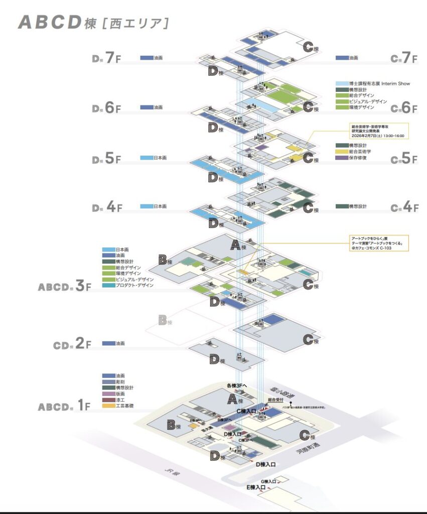 京都市立芸術大学では毎年、作品展が開催されている。2025年度作品展は、2026年2月7日から11日まで学内で実施された、入場無料。