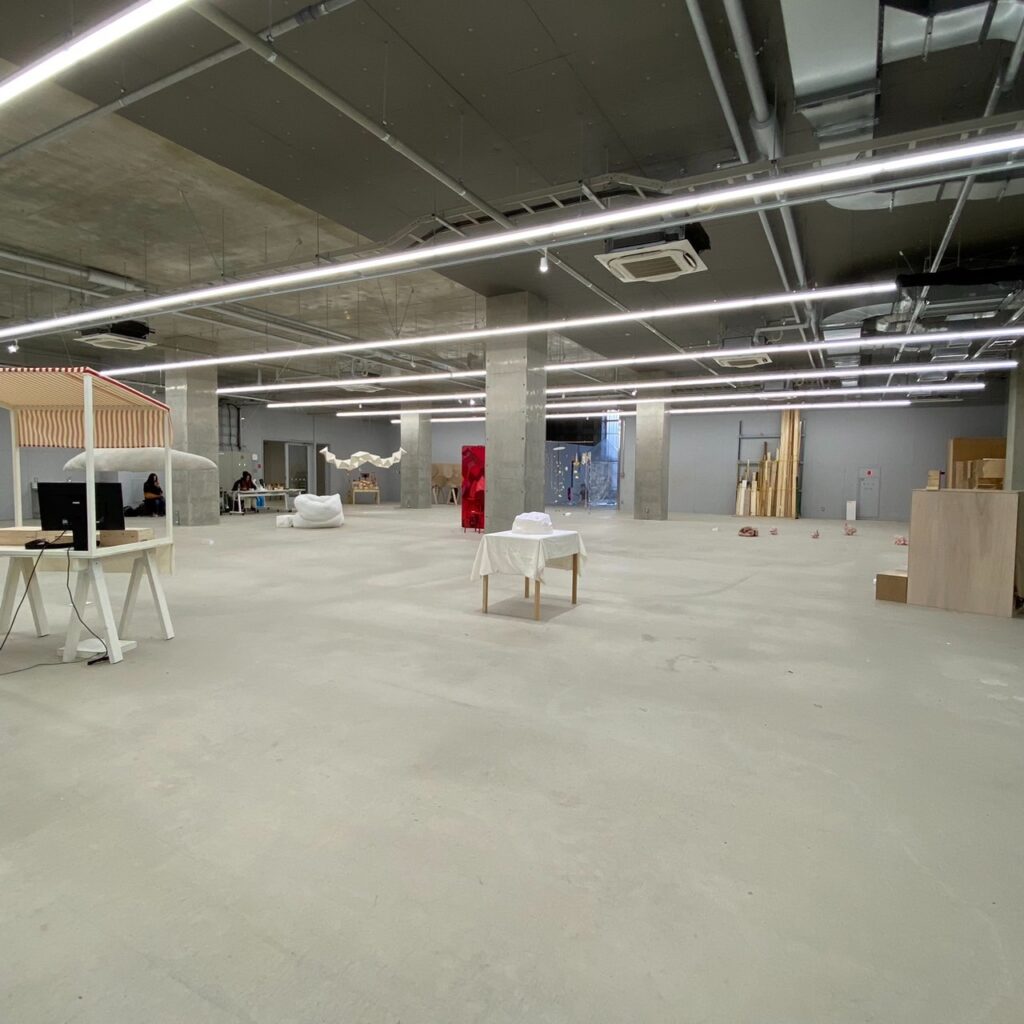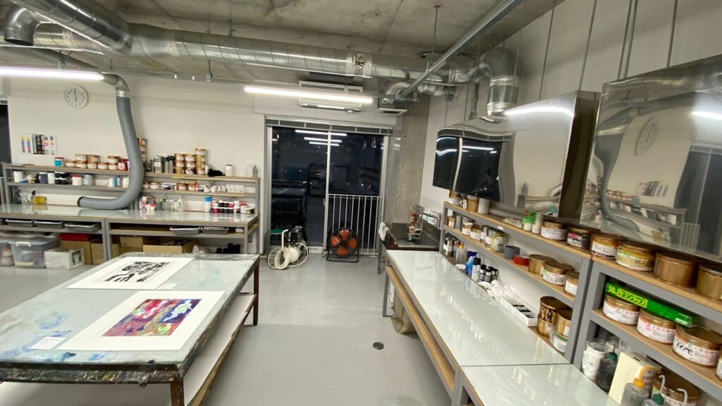 アトリエ的な何もない部屋に作品が展示されている空間は美術館のようで、逆に絵具や機械が置いてあるような制作室に作品が展示されていることもあり、図工や美術の時間を思い出し少し懐かしくなりました。
