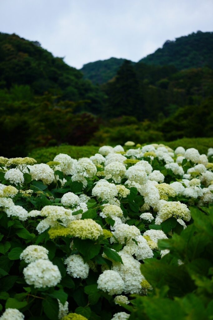 The sky was overcast, but the air was neither humid nor stifling. Clouds layered thickly overhead, yet no rain fell. It was the perfect day to enjoy hydrangeas. On this occasion, I visited the famous Myōjōzan Mimuroto-ji Temple, a serene Buddhist sanctuary far removed from the noise of the city, to immerse myself in a sea of flowers.